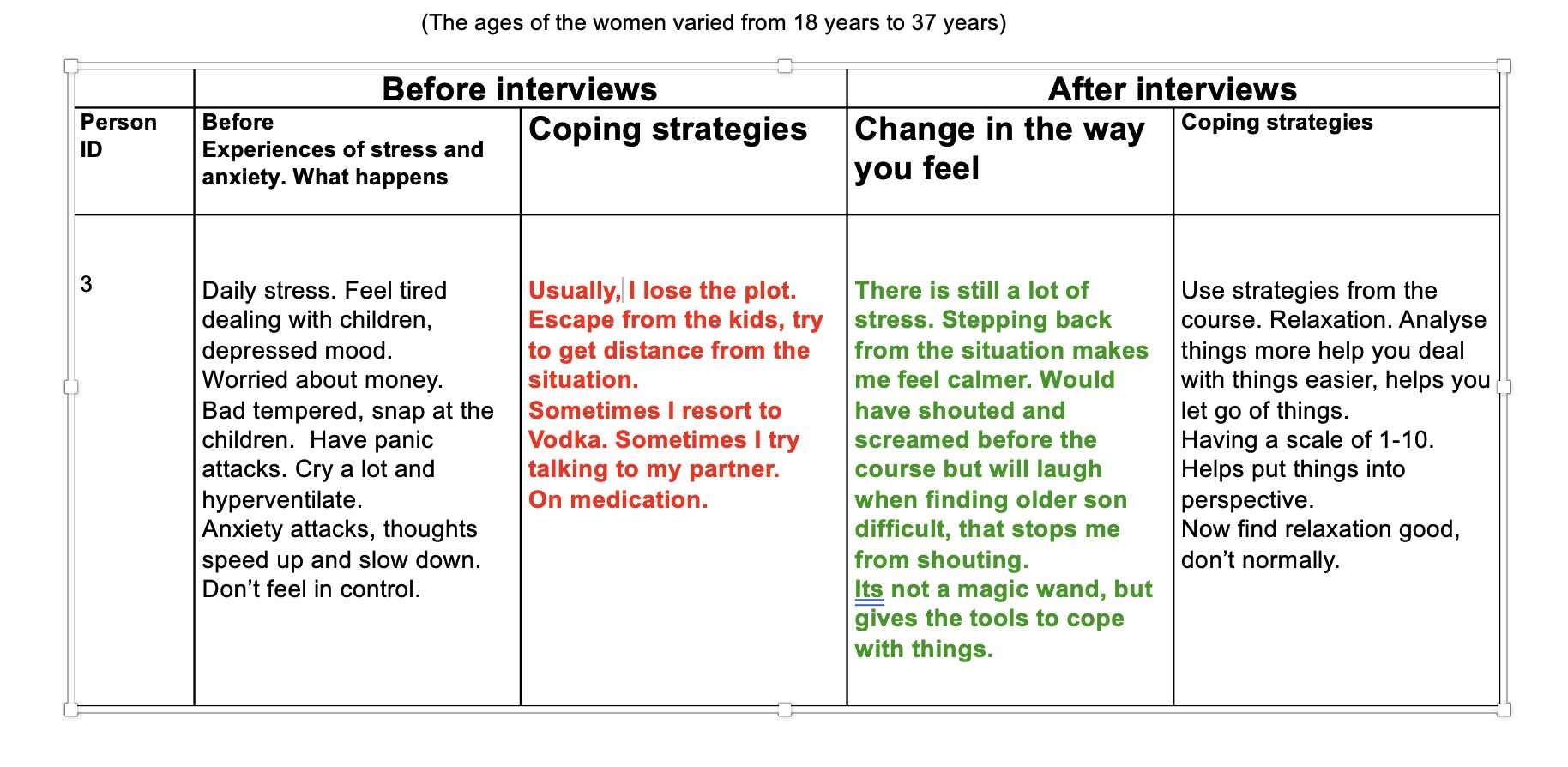 • During one program at a SureStart with ten women with moderate depression, after two sessions, some were noting that their first response was no longer to shout at their children.